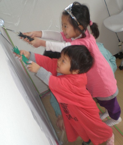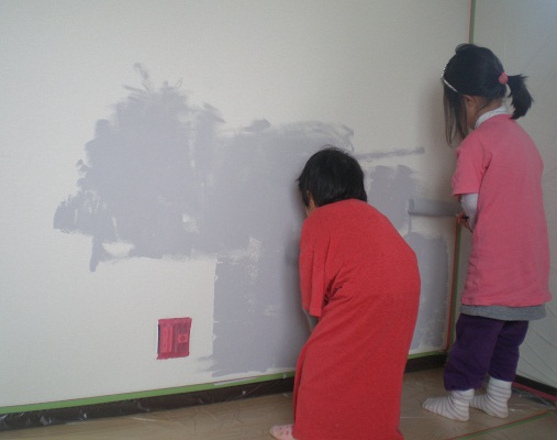 子供たちと楽しくやんやとペンキを塗れればいいなと思って始めましたが、なぜかダンナがプロ根性を出してきて、作業着を着始め、『そんなやり方じゃダメだ!!』、『ほこりをたてたらいい仕上がりができないから、騒ぐな!!』などと言い始め、子供たちは意気消沈。 ・・・おかげさまで良い仕上がりとなりました。