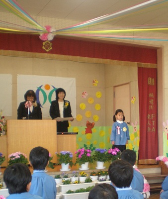 壇の上で 園長先生に賞状を頂くときの立派な態度とか、席についてじっと座っている子供たちの態度がなんだかとても大人びていて、とても成長を感じました。