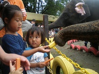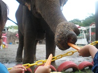 はじめはビビっていた子供たちですが、こんな近くでゾウにエサをあげることができました。
