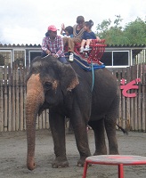行く前は「ぞうに乗る!!」と張り切っていた子供たちでしたが、大きいゾウさんを前にしてとてもビビりまくっていました。そして、もちろん私もビビりまくり。1頭のゾウに3人限定だったので、私が2人を乗せる役割を担っていましたが、直前にしてダンナに変わってほしいと頼みました。でも、「この大事なカメラショットをお前に任せられるかっ!!」と一喝されました。仕方なく3人で順番待ちをしながら、「あの一番小さいゾウさんに乗りたいんですけど…。」と園の人にお願いしてみたら、「3人で乗る場合は、一番大きいゾウさんと決まっています!」と言われてしまい、ますます不安になりました。