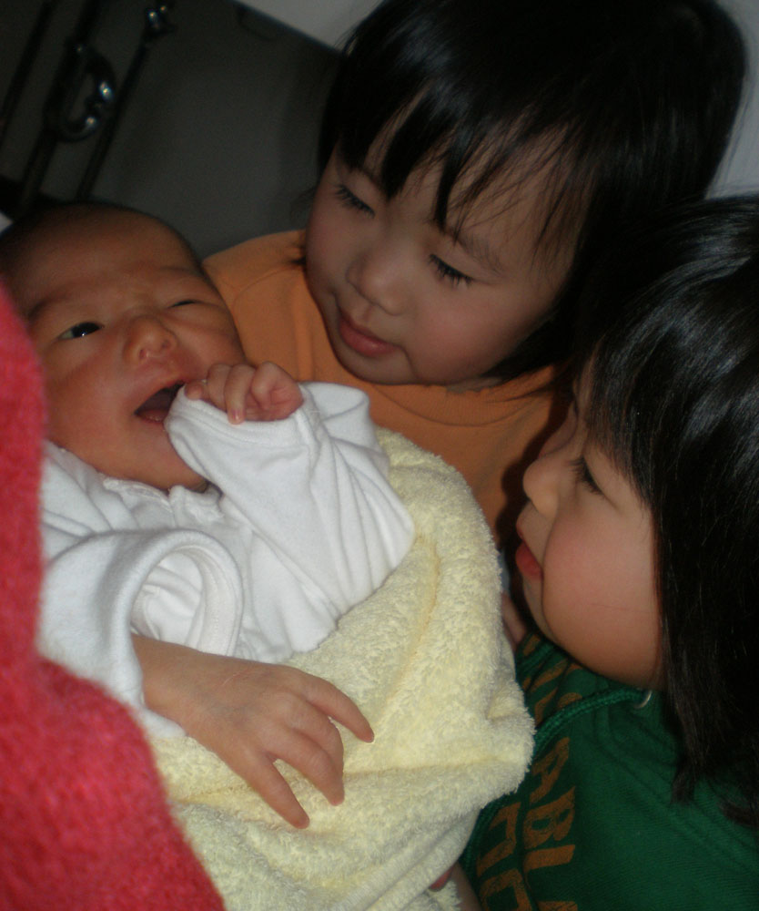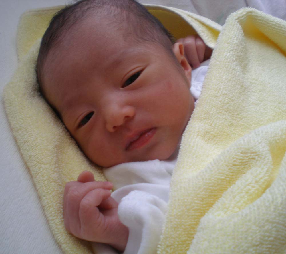 なゆた(以下ナユ)が生まれたとき、骨と皮だけの赤ちゃんに『ゲッ。。。小さ~い!!』とビックリしました。ひぃちゃんが生まれたときは『こんなに大きな赤ちゃんが私のこのお腹に入っていたのね・・・。』と思ったのに。ちなみに、今回は帝王切開にも関わらず、ダンナも手術室に入ることができました。ダンナは張り切っていたにも関わらず、そのときの写真は、全くとってなくって、後産に苦しむ私を尻目に生まれたての赤ちゃんを抱っこしながら、『お母さんが痛いっていってるね~。』とか何とか言って笑ってました。・・・何で私ばっかりこんな目にあっているんだろう・・・と思わず、考えてしまいました。その後だって、術中に面白いことを言って笑わそうとしたり、痛くて痛くて苦しんでいる中、差し出される手をずっっと握りながら、『やっぱり立ち合い出産で良かった』と思っていたら、実は看護士さんだったり。やっぱり出産する時って男の人は何の役にも立たないものです。