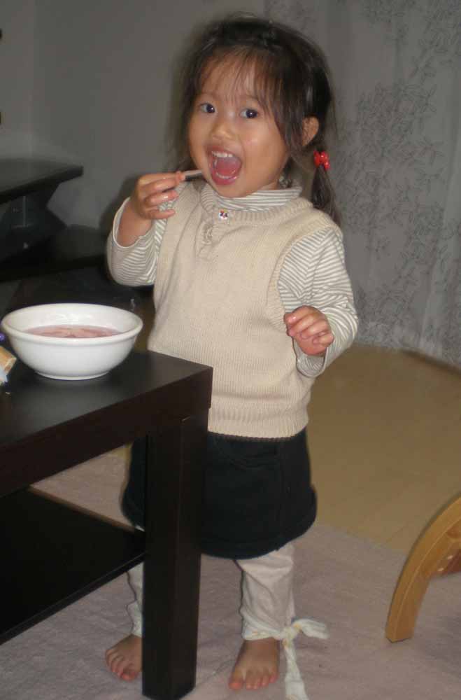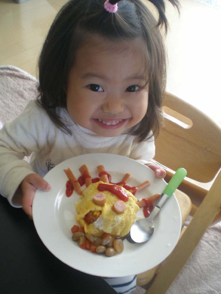 』とか言われるように、作った料理を飾りつけするのが得意です。どうやってたくさん食べさせるのかそれだけを考えて作っています。それはそうと、今日、ひぃちゃんに洋服の試着をしていたときに、『どう?ひぃちゃん、かわいい?』と聞いたら、『ん~、なんかキツキツみたいだけど 良いんじゃない?』と言われました