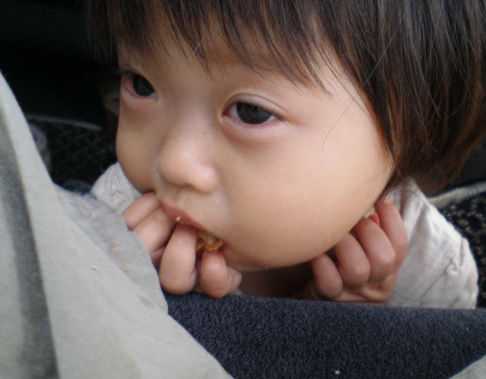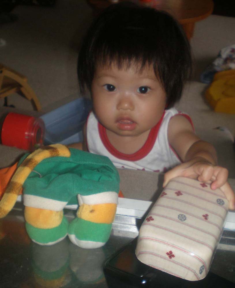 』となってニギニギと思いっきり押していました。『コラーっ!!』と怒ったら、更にいじけてその辺にある、ゼリーやらプリンやらを投げ出しました。『イヤだ』『イヤだ』と言いながら・・・。私の顔にはきっと、