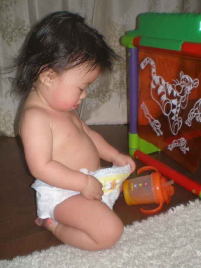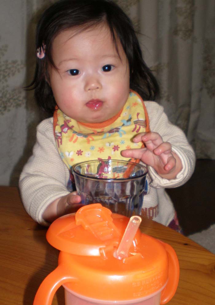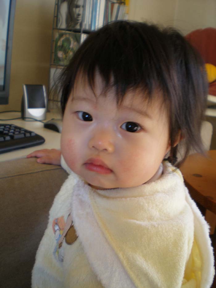 ほどなく、私の用事も終わり、急いでひぃちゃんの元に駆けつけると、なにやら中からキャッキャッと笑い声が。あらっ??私の事に気づいたのかしら???と思い、インターホンを鳴らし、サポートの方を呼ぶと、『今ね、おやつを食べて上機嫌で踊っていたのよ。まだ途中だからあがってください』と言われました。えっ!!おやつ?上機嫌??踊ってる???一瞬、耳を疑いました。ドアを開けるとひぃちゃんがハイハイしてやってきて、『お前も入れよ』といわんばかりに手招きされ、リビングに通され、リビングの真ん中で、のっしりくつろいでいるひぃちゃんを見て、・・・これはひぃちゃんなのか、あんなに人見知りするひぃちゃんなのか・・・。と考えてしまいました。『一度も泣くこともなく、時計の振り子とか、カレンダーとか、飾ってあるものを見て、指差して遊んでたよ。』といわれました。親の心、子知らず、あんなに私は考えていたのに、ひぃちゃんは私をこれっぽっちも思い出さなかったのか!?さっぱり泣かないというのも、なんだか悲しいものです。でも、もしかしたらひぃちゃんは私の言い聞かせを理解していたのかもしれません。やれば出来る子なのです!!