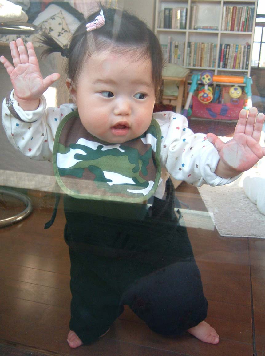 8ヶ月ころから、捕まり立ちをマスター。部屋中の捕まれるところを探し、見つければ立ってみる。上の世界を覗いて楽しんでいるようだ。捕まり立ちをマスターしたころから、後追いも盛んになっている。これが非常に辛い。。。トイレに行くにも、顔を真っ赤にして、「連れてけ!」と怒ってる。仕方ないから、タンバリンと、マラカスを持って、踊りながら姿を消すと、笑って見逃してくれるから、毎回そんなことしてる。