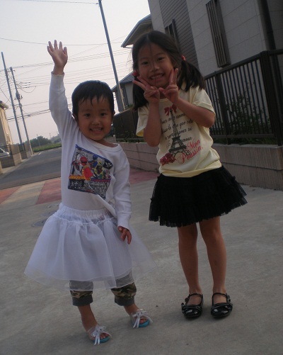 うちの男子、ナユはなぜか女子のスカートを着てヒールを履いて満足げ。