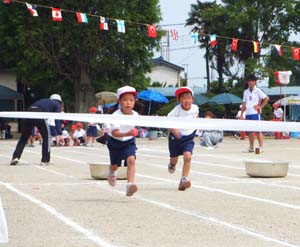 幼稚園の頃からかなりの負けず嫌いで、なぜかいつも1位を目指すひぃちゃんでしたが、今年はそんな自分へのプレッシャーもなく、結構淡々としています。こちらとしてもかけっこで負けてしまうと、1日ぶ~たれてるひぃちゃんなので、それはそれでまぁオッケイなんですけど、あきらめ早いのもなんだかねぇ。